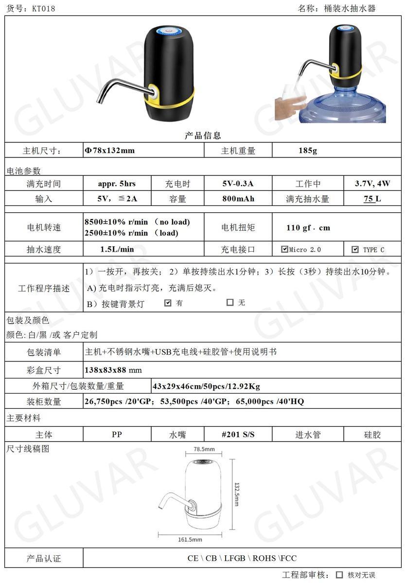 充电式桶装水抽水器(家用)KT018